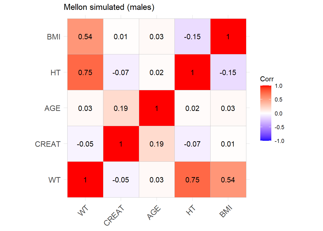 Mellon_M <-ggcorrplot(cor_sim_M, lab =TRUE, title ="Mellon simulated (males)")Mellon_M